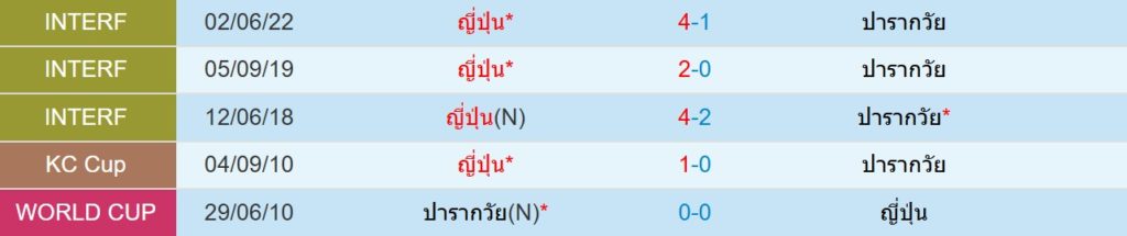 สถิติพบกัน 5 นัดหลังสุดของ : ญี่ปุ่น -vs- ปารากวัย