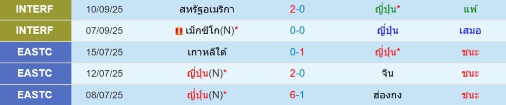 สถิติ 5 นัดหลังสุดของ : ญี่ปุ่น
