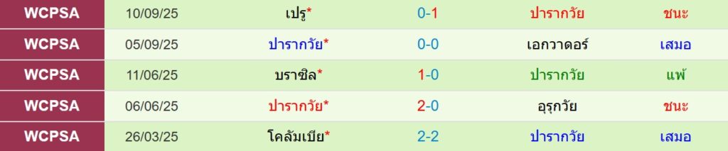 สถิติ 5 นัดหลังสุดของ : ปารากวัย