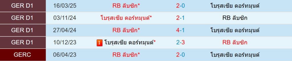 สถิติพบกัน 5 นัดหลังสุดของ : ดอร์ทมุนด์ -vs- ไลป์ซิก