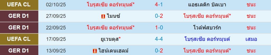 สถิติ 5 นัดหลังสุดของ : ดอร์ทมุนด์
