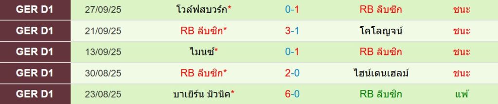 สถิติ 5 นัดหลังสุดของ : ไลป์ซิก