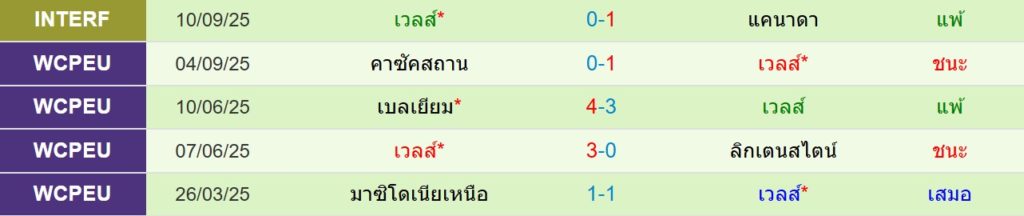 สถิติ 5 นัดหลังสุดของ : เวลส์